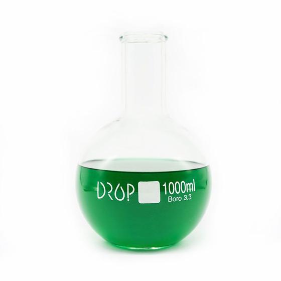 Balão Fundo Chato Vidro Boro 1000ml 1 Litro Laboratório NEOBIO Drop Balão/ Bexiga Magazine
