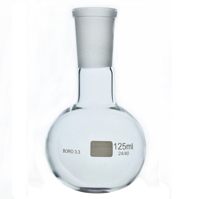 Balões de fundo chato. O balão de fundo chato é esférico e provido de colo, sua constituição é feita de borossilicato, comumente conhecido como pirex, possui alto grau de transparência e resistente a variação de temperaturas e choques térmicos. Detentor de um baixo coeficiente de dilatação térmica este material é excelente para.