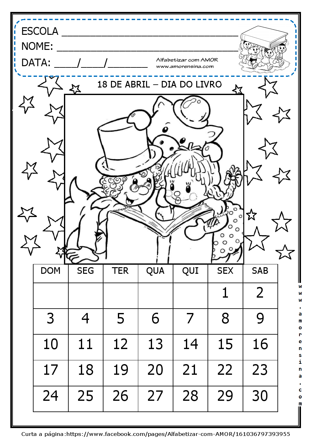 Alfabetizar com AMOR CALENDÁRIOS PARA O ALUNO MÊS DE ABRIL