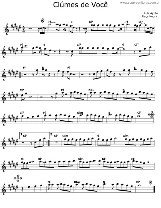 Super Partituras Ciume De Você (Roberto Carlos), com cifra