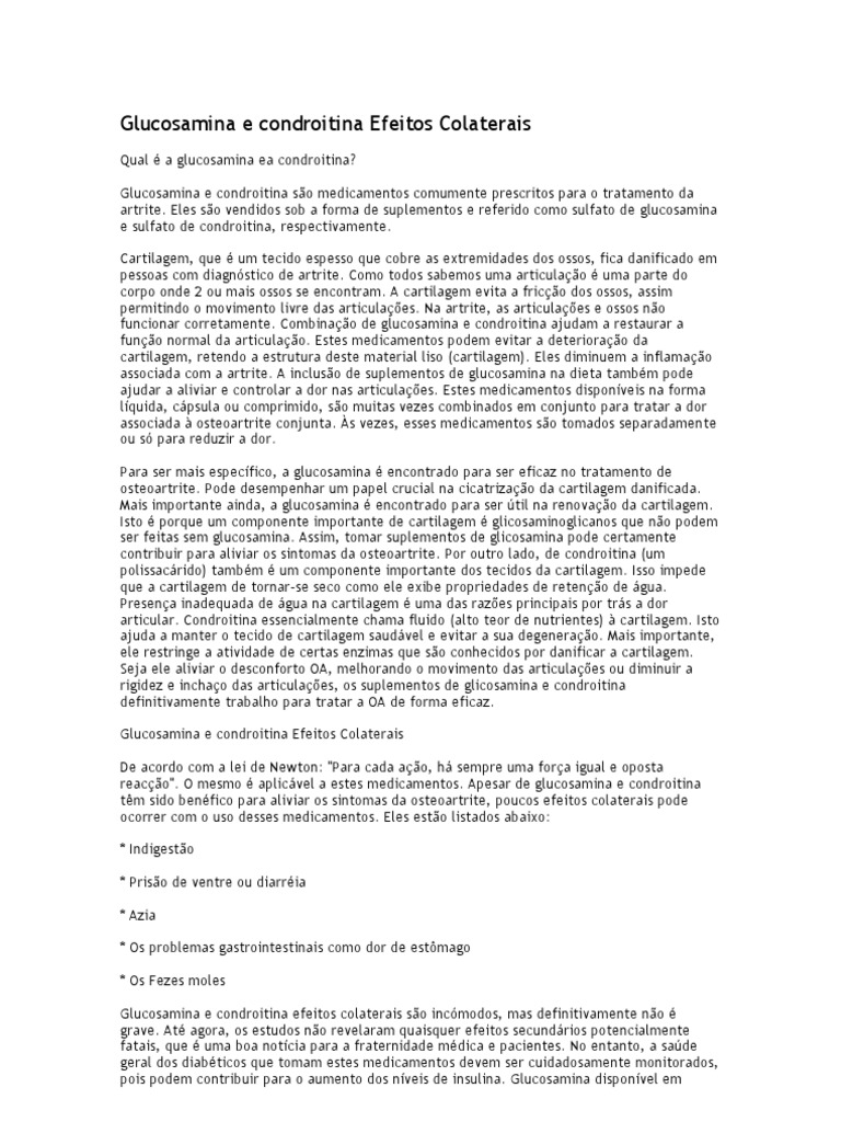 Glucosamina e Condroitina Efeitos Colaterais PDF Diabetes mellitus Osteoartrite
