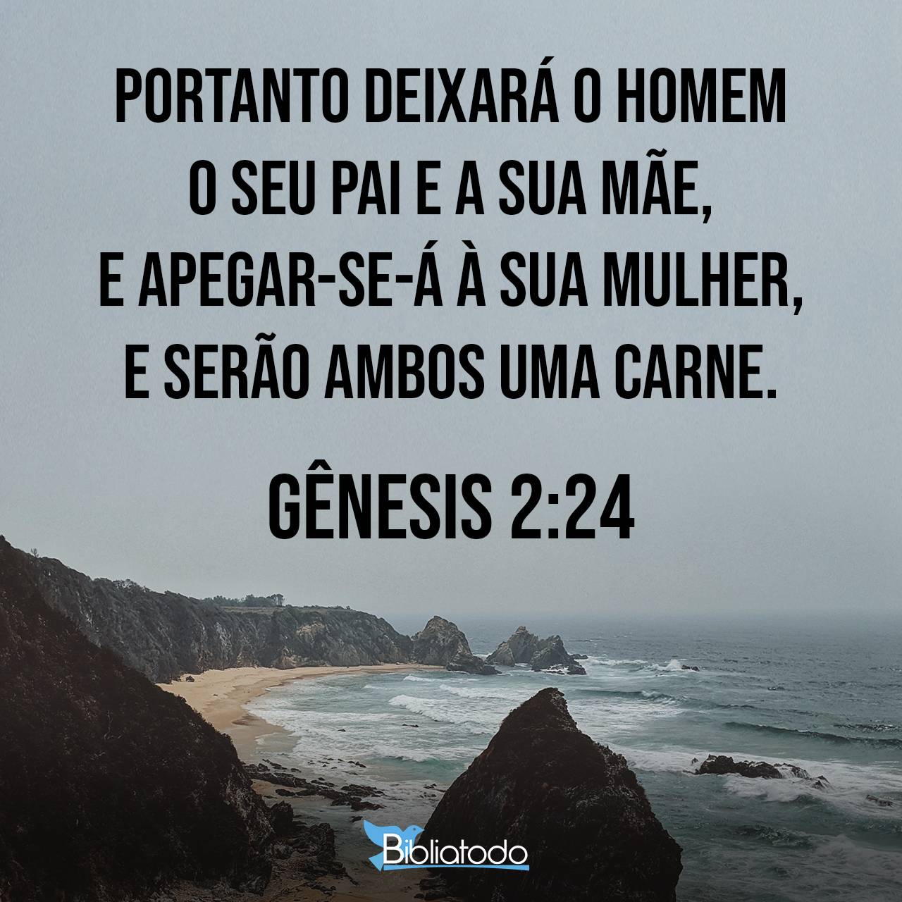 Este versículo em outras versões da Bíblia. 24 Portanto deixará o homem a seu pai e a sua mãe, e unir-se-á à sua mulher, e serão uma só carne. Versão Almeida Revista e Atualizada. 24 Portanto, deixará o varão o seu pai e a sua mãe e apegar-se-á à sua mulher, e serão ambos uma carne. Versão Almeida Revista e Corrigida.