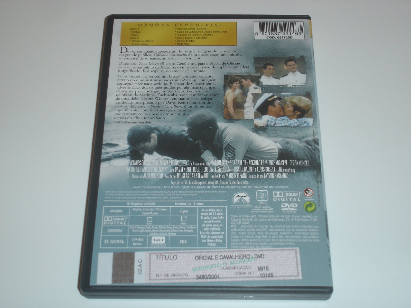 Oficial e Cavalheiro é um filme rico e gratificante, com interpretações tocantes, que permanece na nossa memória muito depois do filme ter acabado. DISCO 1 Feature Trailer DISCO 2 Oficial e Cavalheiro: 25 anos depois Regresso a Port Towsend Escola de Candidatos a Oficiais dentro e fora A música de Oficial e Cavalheiro Gere e Gosset: a luta.