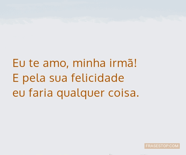 Eu te amo, minha irmã! E pela sua felicidade eu... FrasesTop