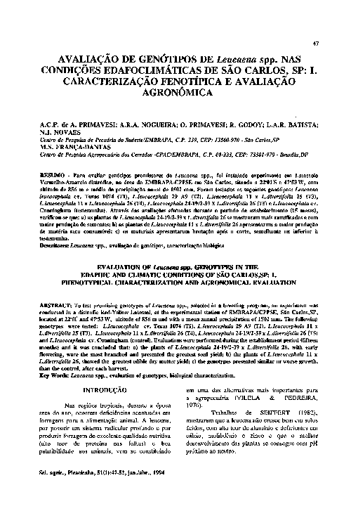 (PDF) Avaliação de genótipos de Leucaena spp. nas condições edafoclimáticas de São Carlos,SP II