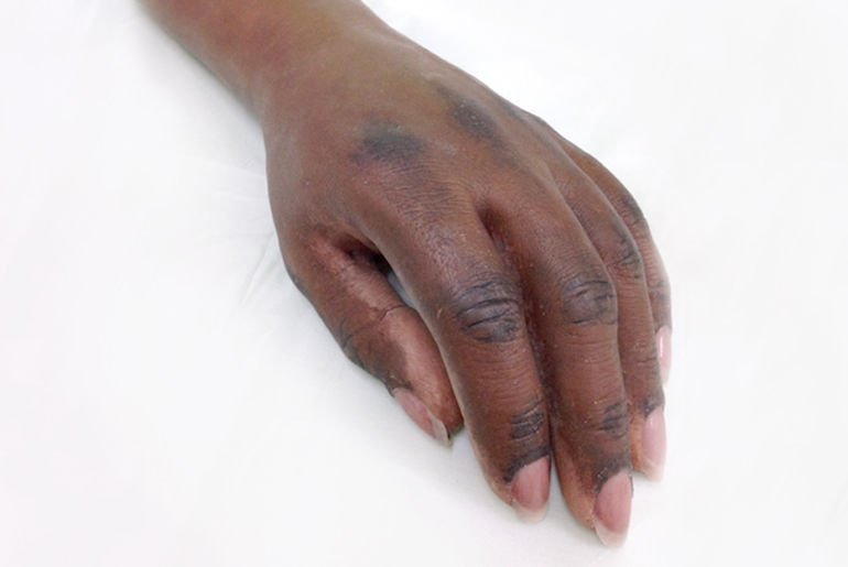 Para ajudar quem passou por esse transtorno, uma empresa mexicana criou uma solução que pode atenuar o sofrimento de amputados ou de quem, por alguma razão, perdeu uma parte do corpo: a Dianceht, que fabrica próteses muito realistas de mãos, braços, dedos, narizes e orelhas.. Próteses simulam as veias e sardas dos clientes (Foto: Divulgação)