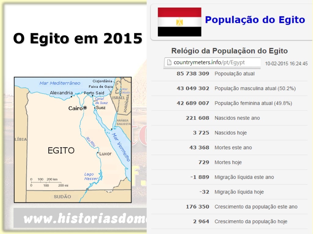 Informações sobre Egito. Egito está localizado no continente África tendo como capital a cidade Cairo, e seu fuso horário é o +2.
