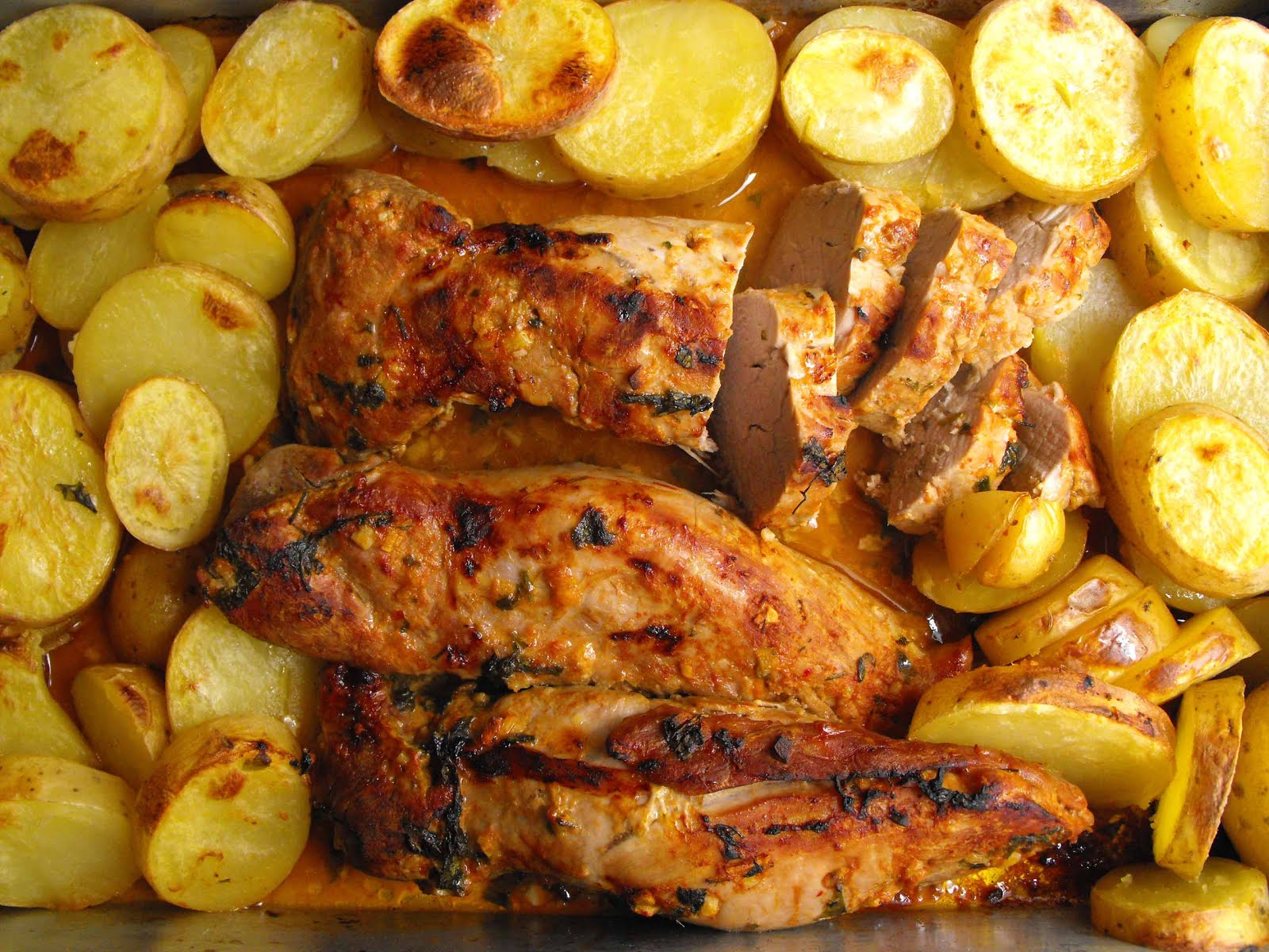As receitas lá de casa Lombinhos de porco com batatas no forno