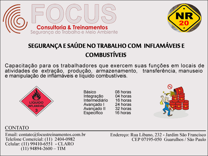 Segurança do Trabalho NR 20 LÍQUIDOS COMBUSTÍVEIS E INFLAMÁVEIS