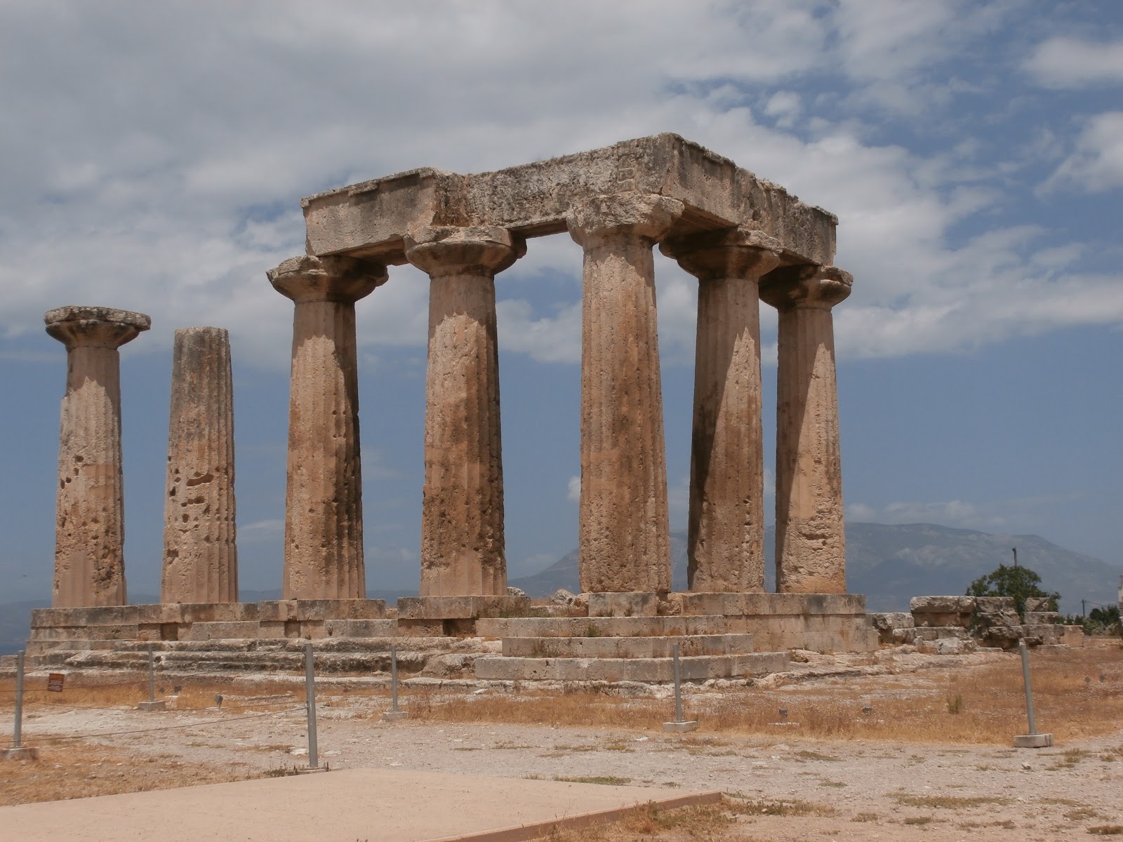 O templo dórico de Apolo, um dos principais marcos históricos da cidade foi construído em 550 a.C., no auge da riqueza da pólis. A antiga cidade foi parcialmente destruída pelos romanos em 146 a.C., mas em 44 a.C., foi reconstruída como uma cidade romana.