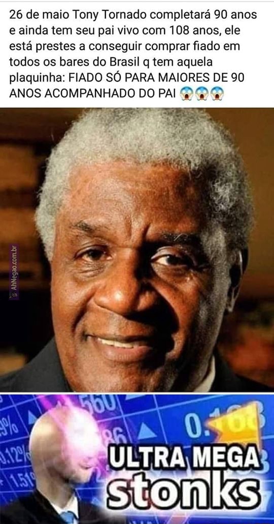 Isso porque o pai de Tony ainda está vivo, aos 108 anos. "26 de Maio Tony Tornado completará 90 anos e ainda tem seu pai vivo com 108 anos, ele está prestes a conseguir comprar fiado em todos.